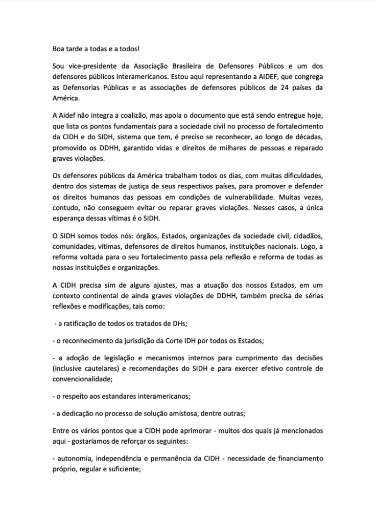 Discurso do Vice-Presidente da ANADEP, Antonio Maffezoli, à Comissão Interamericana de Direitos Humanos.