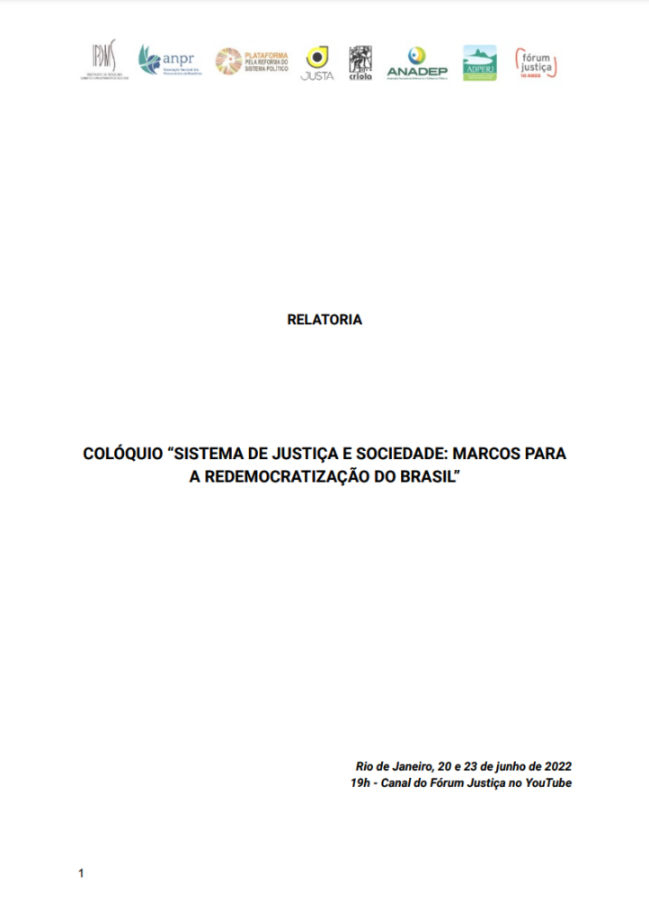FÓRUM JUSTIÇA. Colóquio Sistema de Justiça e Sociedade: Marcos para a Redemocratização do Brasil. Rio de Janeiro, 21 nov. 2022. Disponível em: https://staging.forumjustica.com.br/biblioteca/coloquio-sistema-de-justica-e-sociedade-marcos-para-a-redemocratizacao-do-brasil/. Acesso em: 23 apr. 2026.