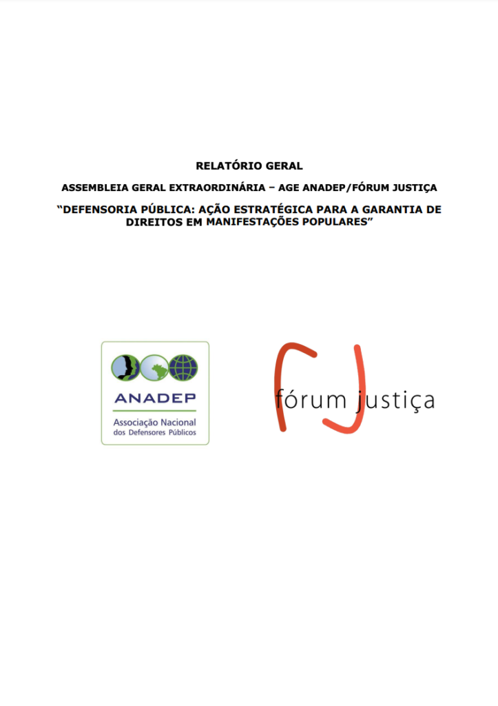 ASSOCIAÇÃO NACIONAL DOS DEFENSORES PÚBLICOS; FÓRUM JUSTIÇA. Assembléia Geral Extraordinária ANADEP e Fórum Justiça: Defensoria Pública: Ação Estratégica para a Garantia de Direitos em Manifestações Populares. 7 mar. 2014. Disponível em: https://staging.forumjustica.com.br/biblioteca/memoria-assembleia-geral-extraordinaria-age-anadep-fj-defensoria-publica-acao-estrategica-para-a-garantia-de-direitos-em-manifestacoes-populares-2014-2/. Acesso em: 24 apr. 2026.