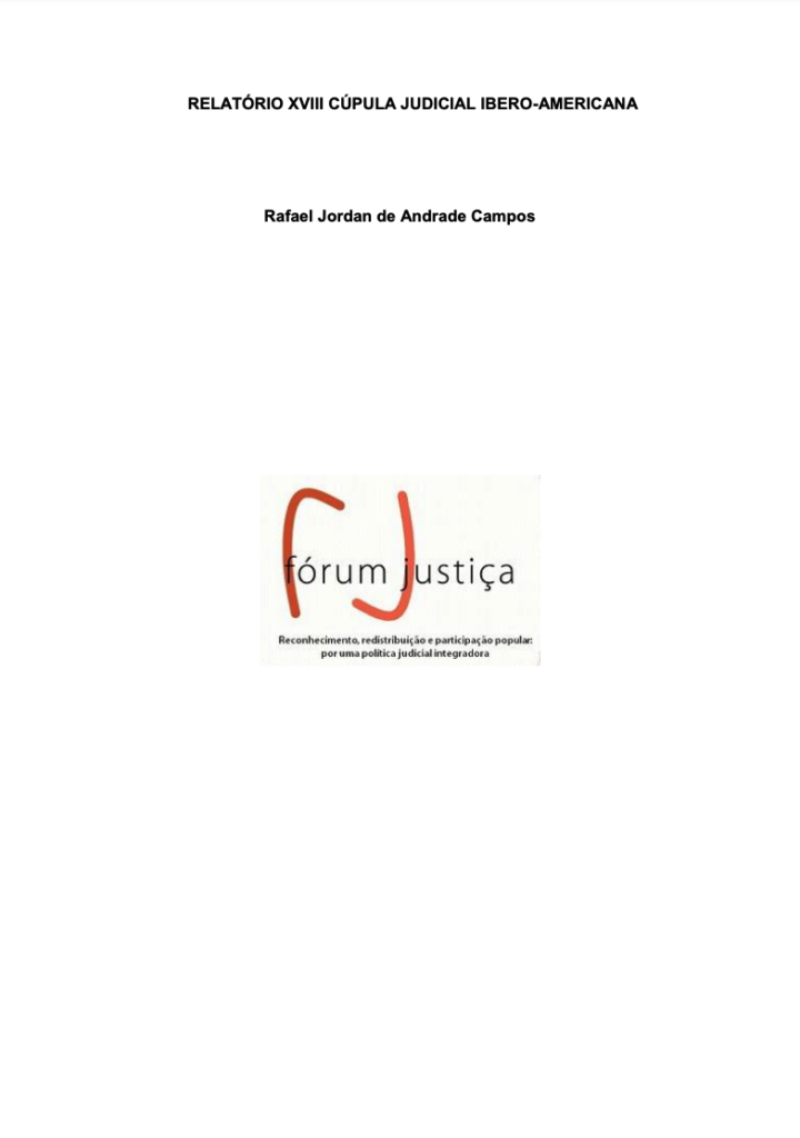 FÓRUM JUSTIÇA. Relatório da XVIII Cúpula Judicial Ibero-Americana. 2016. Disponível em: https://staging.forumjustica.com.br/biblioteca/relatorio-da-xviii-cupula-judicial-ibero-americana/. Acesso em: 23 apr. 2026.