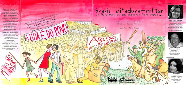 Devido aos últimos acontecimentos e manifestações no Brasil de junho de 2013, resolvemos distribuir para download e visualização digital completa a publicação “Brasil: ditadura militar – um livro para os que nasceram bem depois…”, da qual sou ilustradora. Acreditamos que ele pode ser uma ótima ferramenta para trabalhos de educação popular sobre a nossa história, que não podemos esquecer!!! POR FAVOR DIVULGUEM, o livro é didático e de simples entendimento (ele é infanto juvenil). Estamos em um momento que conhecer a história da ditadura sob uma ótica militante é importantíssimo!!! Vale lembrar que esse livrinho é fruto de um trabalho árduo de pesquisa e dedicação, ou seja, disponibilizamos na internet para ampliar seu acesso, mas se quiser nos ajudar comprando um exemplar original escreva para brasilditaduramilitar@gmail.com.