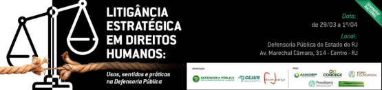 O concurso destina-se a selecionar casos para serem apresentados no Seminário Nacional “LITIGÂNCIA ESTRATÉGICA EM DIREITOS HUMANOS: USOS, SENTIDOS E PRÁTICAS NA DEFENSORIA PÚBLICA”, promovido pelo Fórum Justiça e pela Defensoria Pública do Estado do Rio de Janeiro, com apoio da Fundação Ford, da Associação Nacional de Defensores Públicos – ANADEP, do Colégio de Ouvidorias de Defensorias Públicas do Brasil, da Comissão Especializada em Escolas Superiores e Centros de Estudos das Defensorias Públicas do Colégio Nacional dos Defensores Públicos Gerais – CONDEGE e da Fundação Escola Superior da Defensoria Pública do Estado do Rio de Janeiro – FESUDEPERJ.