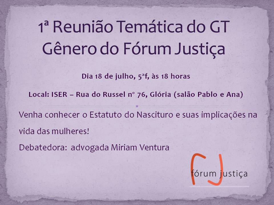 E para conhecermos um pouco mais sobre o Estatuto e saber das suas implicações na vida das mulheres o GT gênero do Fórum Justiça convida para o debate, com a presença da advogada Miriam Ventura.