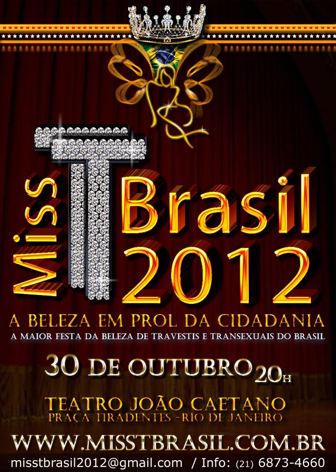 Travestis e Mulheres Transexuais de Diversos Estados do País vão se reunir no próximo dia 30 de outubro na busca pela realização de um lúdico sonho: Tornar-se Miss Brasil. As candidatas ao título de Miss T Brasil 2012, farão parte do certame de beleza específico que irá eleger a mais Bela Trans do Brasil.