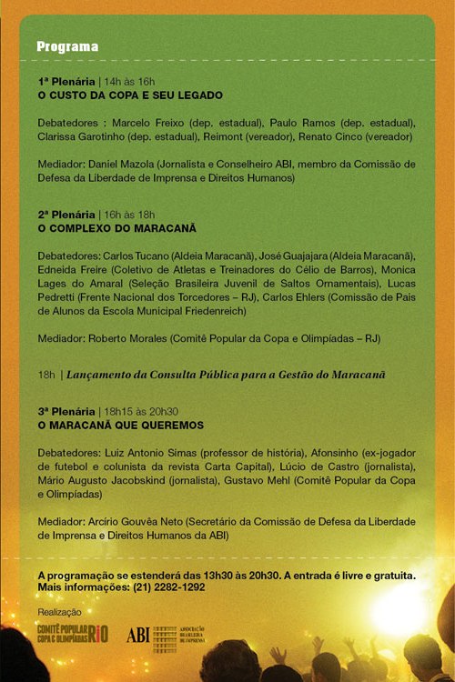 Tema: O Maracanã que queremos –- Horário: 18h15 às 20h30