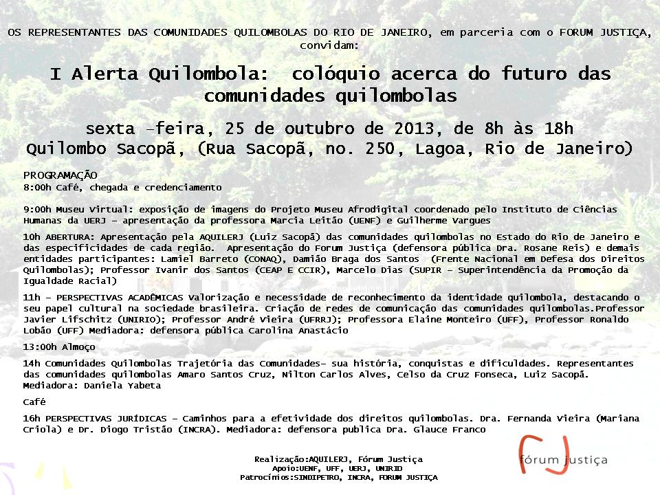 OS REPRESENTANTES DAS COMUNIDADES QUILOMBOLAS DO RIO DE JANEIRO, em parceria com o FORUM JUSTIÇA, convidam: