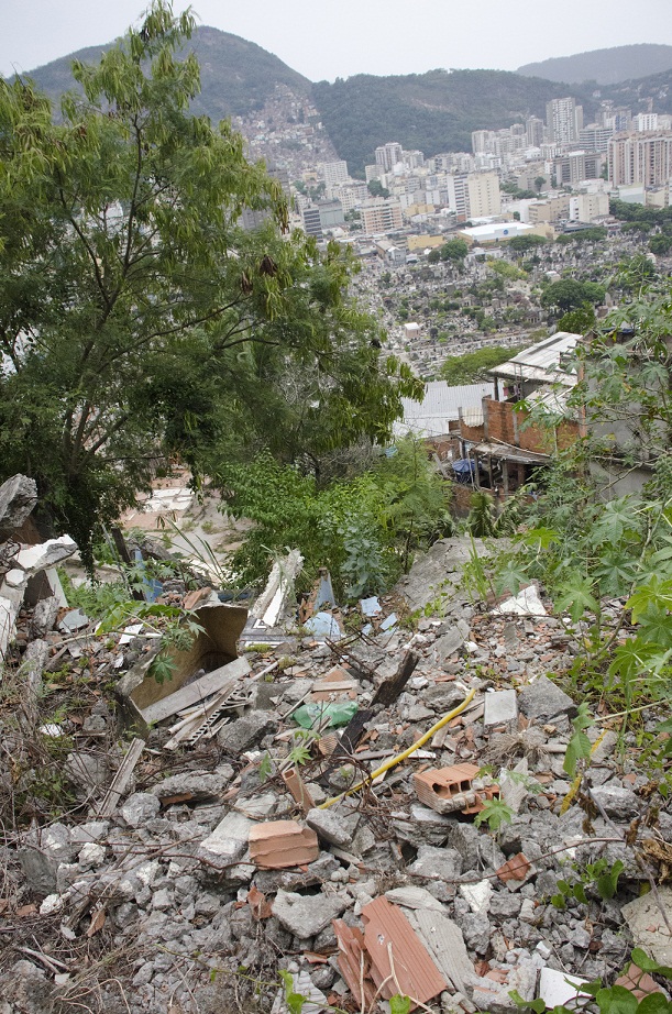Ela conta que muitos moradores aceitaram sair, pois acreditaram que estavam em perigo. “Essa foi a estratégia que o prefeito usou para retirar 250 famílias daqui do morro. Enganados e sem esperança, muitos foram para a Baixada Fluminense, Nova Iguaçu, Triagem… Não são poucos os que retornam e choram sobre os entulhos de suas casas. O que foi feito aqui foi uma grande covardia”, desabafa.