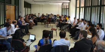 O diretor e ex-presidente da Associação, André Castro, coordenou a primeira roda de debates, voltada à escuta dos movimentos sociais, convidando a todos, inicialmente, a responder um questionário com as principais preocupações e dilemas com relação às manifestações populares, além de intermediar os diálogos. Um dos primeiros a fazer uso da palavra foi o representante da rede Observatório das Metrópoles, Rômulo Ribeiro. O organismo tem uma pesquisa em rede específica com relação à copa e seu impacto nas cidades-sede, basicamente contemplando quatro eixos: segurança, moradia e mobilidade meio ambiente e governança. “O que se percebe é a desinformação sobre as ações a serem tomadas, justamente para desmobilizar a articulação popular. Há um processo de mercantilização e elitização das cidades. E o que chama a atenção sobre a copa já começa pelo nome. É um evento da Fifa, e não do povo, temos percebido isso, inclusive pelo nome”, afirmou.