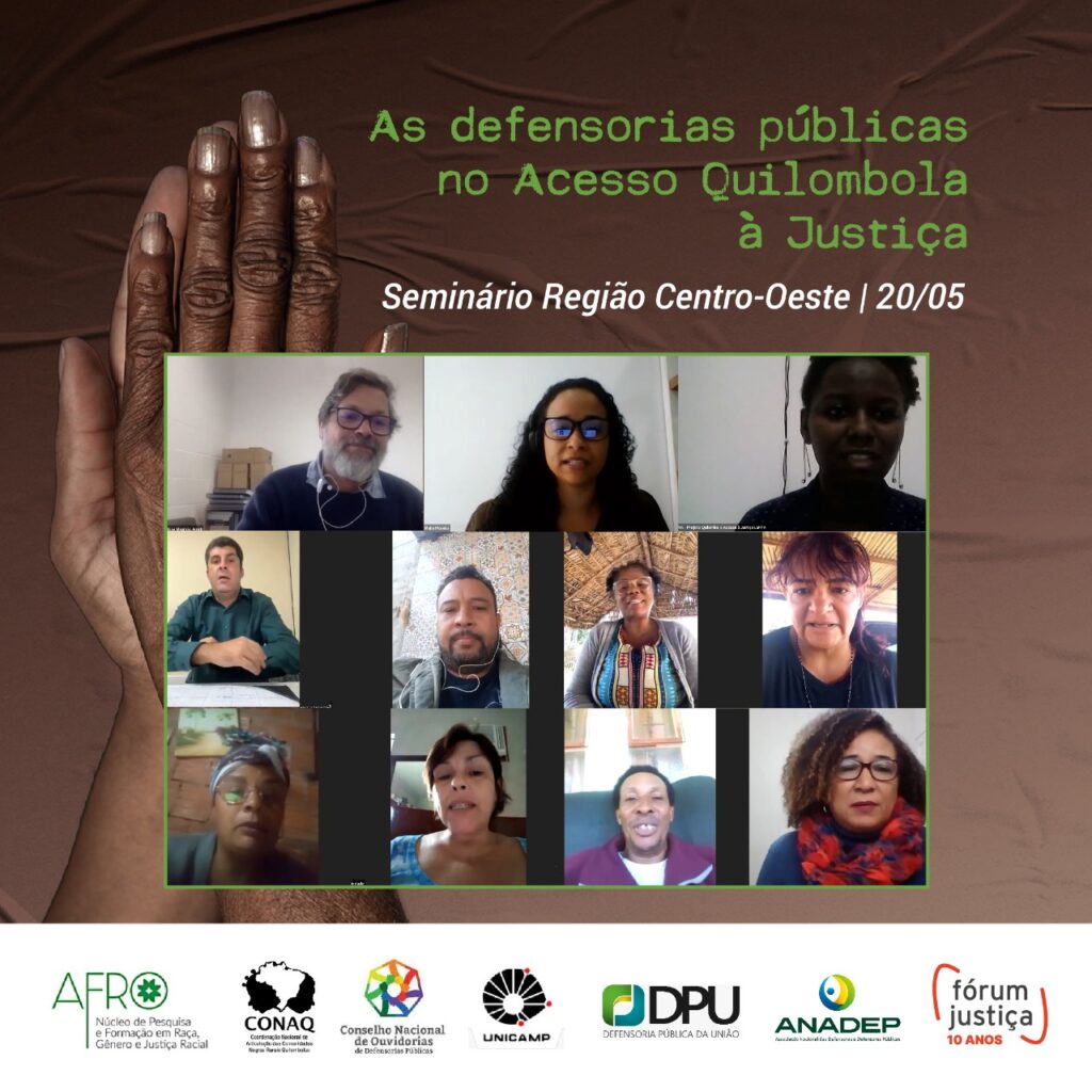 Os abusos e as violações decorrentes do agronegócio e da monocultura, a contaminação da água, do solo e do ar, ameaças à lideranças e isolamento e abandono das comunidades quilombolas na Região Centro-Oeste foram os principais problemas levantados pelas lideranças que participaram  do segundo seminário do projeto “Quilombos e acesso à justiça: a atuação da Defensoria Pública”, na última sexta-feira (20/05), que reuniu defensoras/es públicas/os, ouvidorias das Defensorias, quilombolas e assessorias jurídicas populares pela plataforma ZOOM.