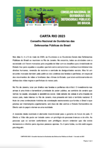 A implantação de ouvidorias externas em todas as Defensorias Públicas e a observação da lisura do processo de eleição do(a) ouvidor(a) é uma das prioridades desse eixo. As ouvidorias externas são instâncias fundamentais para ampliar o diálogo com a sociedade civil e diminuir o impacto da hierarquia entre os atores judiciais e a população. Instituídas em lei de 2009, ainda estão ausentes em vários estados brasileiros.