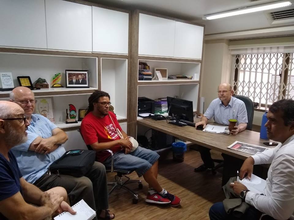 Nesta última semana, o Fórum Justiça acompanhou membros do CONSEA em visita a parlamentares que defendem a segurança alimentar. Assim, visitou-se os gabinetes das deputadas federais Fernanda Melchiona (PSOL), Maria do Rosário (PT) e do Vereador Marcelo Sgarbosa (PT), no dia 22 de janeiro. E no dia 24 de janeiro, os deputados federais Elvino Bohn Gass (PT) e Marcon (PT) e o deputado estadual Edgar Pretto (PT). Discutiu-se as violações trazidas para a segurança alimentar do país pela Medida Provisória nº 870/2019 do Governo Federal e pediu apoio para se reverter o disposto em prol da saúde e da alimentação adequada para a população. Representou o Fórum Justiça Rodrigo de Medeiros, da Rede Nacional de Advogadas e Advogados Populares/RENAP e pelo Consea Medusa e Leonardo Melgarejo.