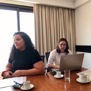 Rebeca Sena, estagiária FJ; Juanita Cuéllar, GT Ibero Latino-Americano, FJ