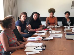 Da esquerda para a direita: Arlanza Rebello, DPRJ; Adriana Britto, DPRJ; Rebeca Sena, estagiária FJ; Lia Manso, Criola; Mariana Imbelloni