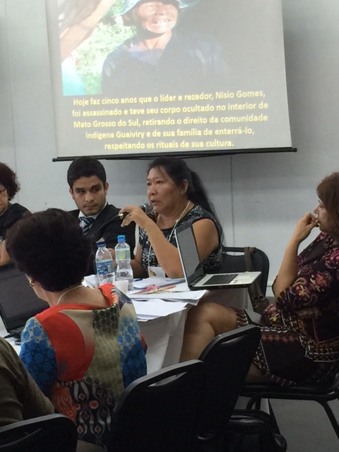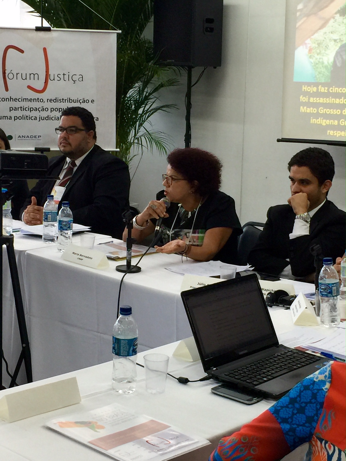 Em continuação, na parte da tarde, o seminário, organizado pelo Fórum Justiça na Universidade do Estado do Rio de Janeiro (UERJ), apresentou uma roda de conversa com o tema: Povos Indígenas e Comunidades Tradicionais. Com um cartaz lembrando os cinco anos da morte do líder e rezador, Nísio Gomes, assassinado e que teve seu corpo ocultado no interior do mato Grosso do Sul, o Procurador da República, Julio Araujo e a Advogada componente do Conselho Indígena de Roraima, Joênia Wapichana coordenaram a mesa. Wapichana destacou que a sua preocupação é grande com a PEC 215 e a discussão de impor a regularização de direito a partir do marco eleitoral. Participantes da mesa fizeram suas observações.